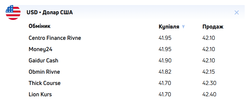 Курс валют в обмінниках за даними kurs.chasdiy.org