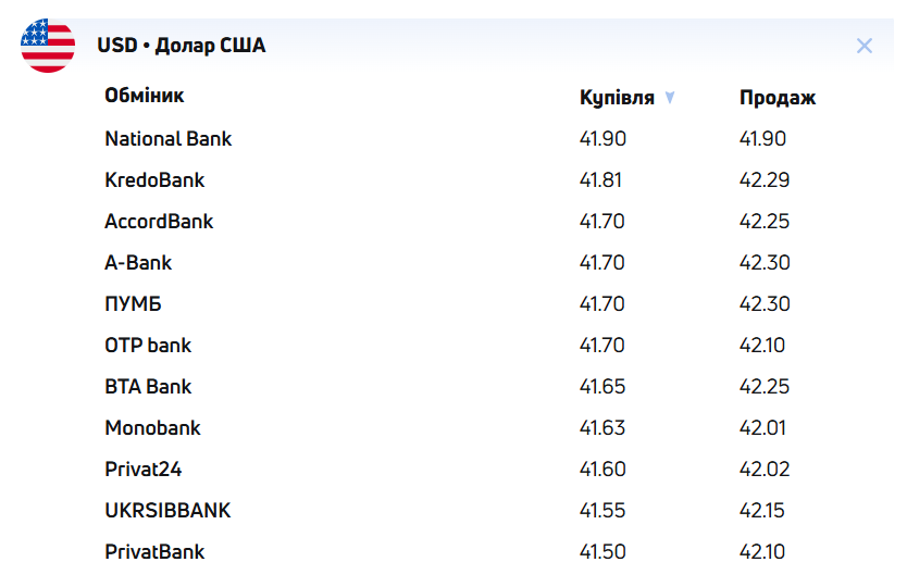 Курс валют в банках за даними kurs.chasdiy.org