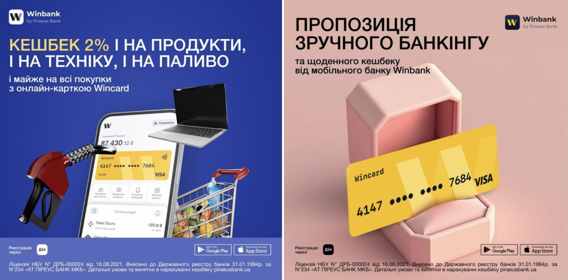 Приклад успішного впровадження для Winbank (Піреус Банк). Мета — збільшити видачу карток у застосунку, знизивши вартість залучення (CPA).