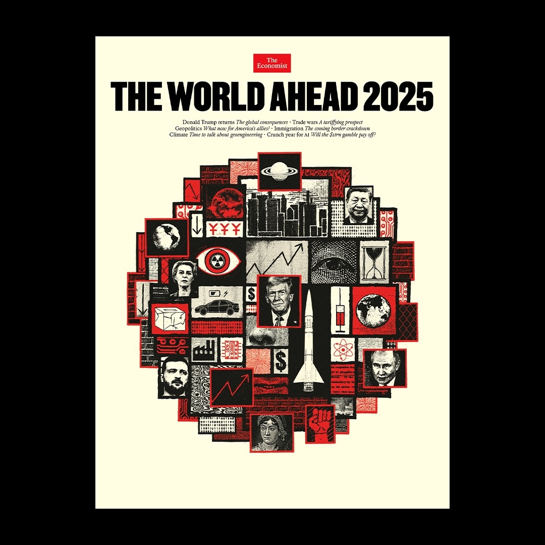 Британське видання The Economist опублікувало обкладинку-ребус з ймовірним прогнозом на 2025 рік. Серед тем – політичні протистояння, зміни клімату, штучний інтелект та інше.