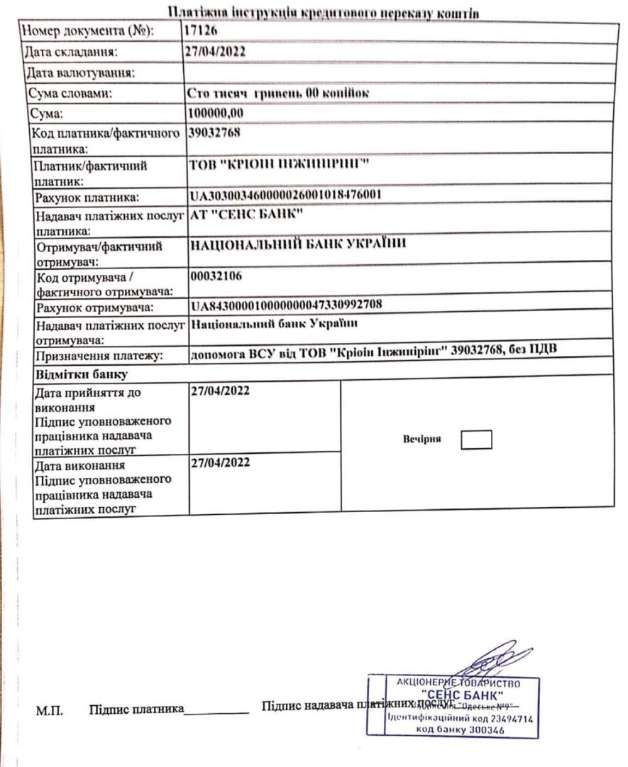 Після відмови від цієї пропозиції, проти компанії було ініційовано низку кримінальних проваджень. Компанію звинуватили у виробництві зброї та постачанні її до росії, незважаючи на те, що «Кріоін Інжиніринг» не співпрацювала з країною-агресором, будучи частиною міжнародного холдингу та великим експортером на західні ринки.