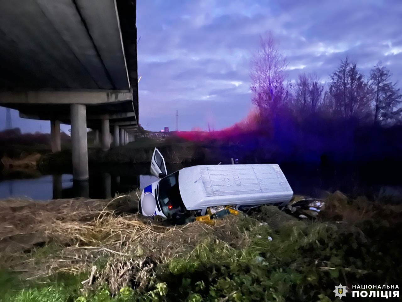 Неподалік патрулював екіпаж поліцейських УПП, які й викликали рятувальників. Працівники ДСНС деблокували кермувальника та витягли з кювету бус.