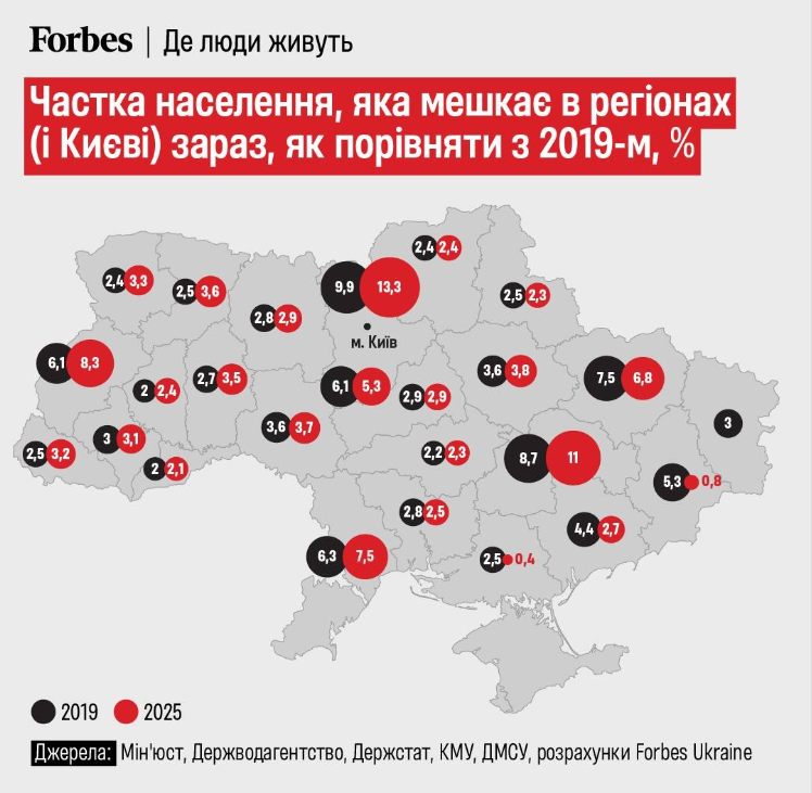 «Загальна чисельність населення в межах міжнародно визнаних кордонів становить 35–35,5 млн осіб. Це показник, близький до чисельності населення України у 1920-х роках і лише приблизно на 2 мільйони більше, ніж після завершення Другої світової війни», — зазначили у Forbes.