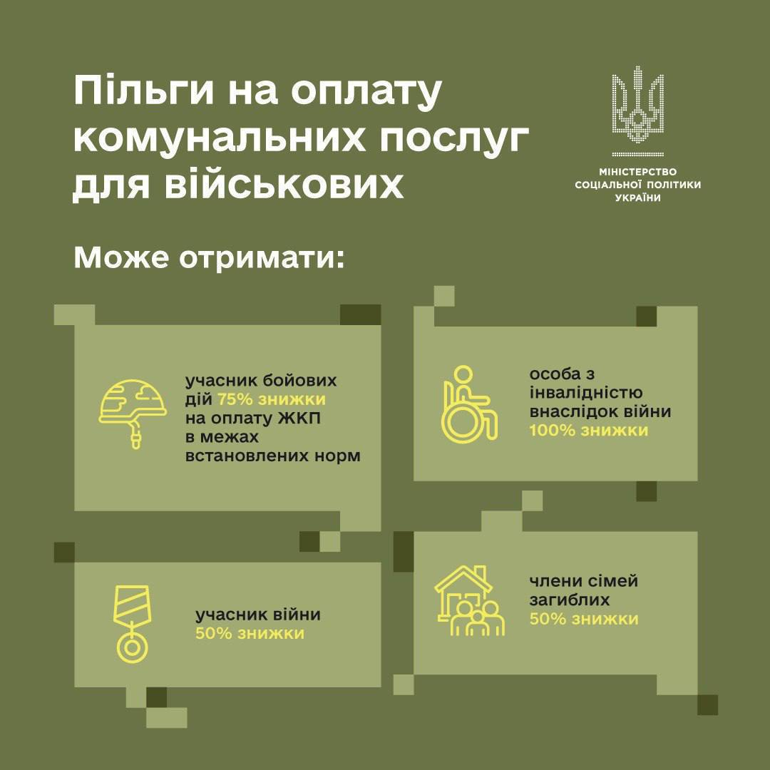 Відсоток компенсації залежить від статусу пільговика. Знижка надається на оплату житлово-комунальних послуг у межах встановлених норм.