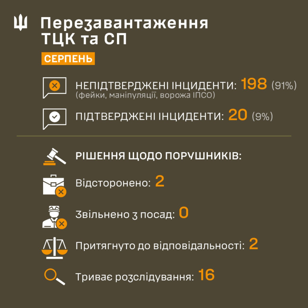 Ті ж 9% інцидентів, які підтвердилися, стосувалися окремих працівників ТЦК. Проти них уже відкрито кримінальні провадження. Будь-які зловживання чи перевищення повноважень не залишаться безкарними, але важливо відділяти реальні факти від вигадок. Водночас держава посилила контроль за роботою ТЦК. Регулярно проводяться внутрішні перевірки, впроваджуються нові механізми прозорості, а самих військовозобов’язаних закликають повідомляти про порушення офіційними каналами, а не в анонімних чатах.